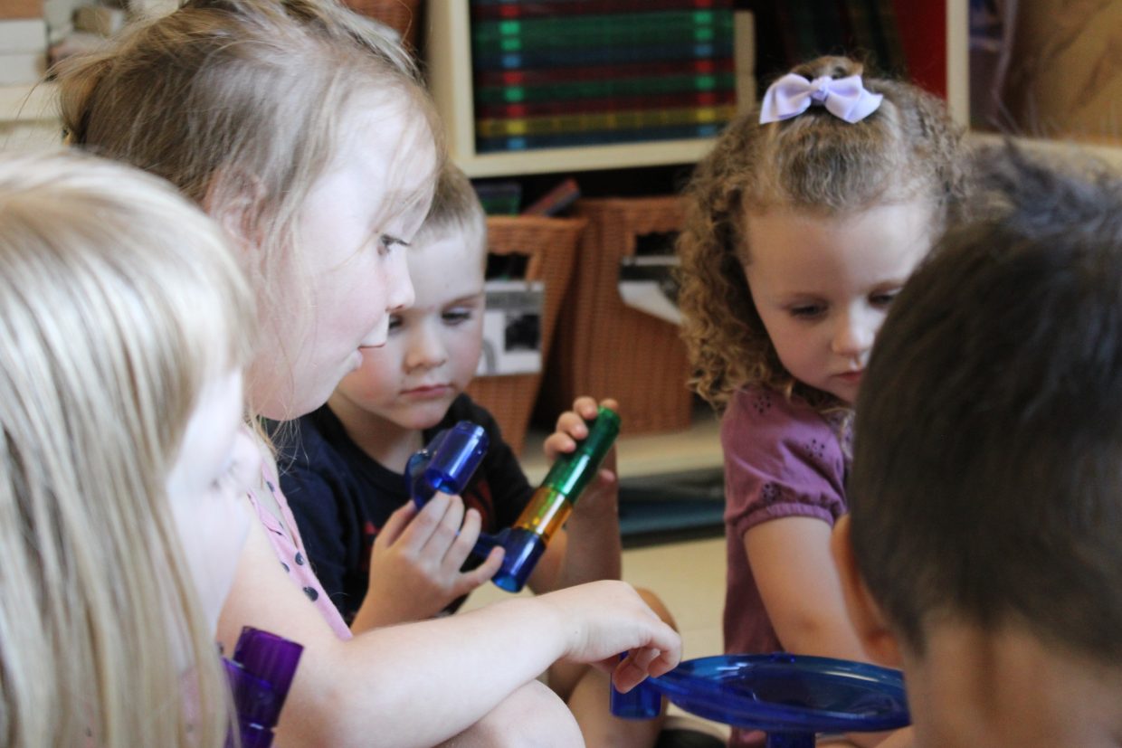 Children play and learn together as they engage in a variety of 15-minute group activities through a one-hour session. Photo by Community Living Huntsville.