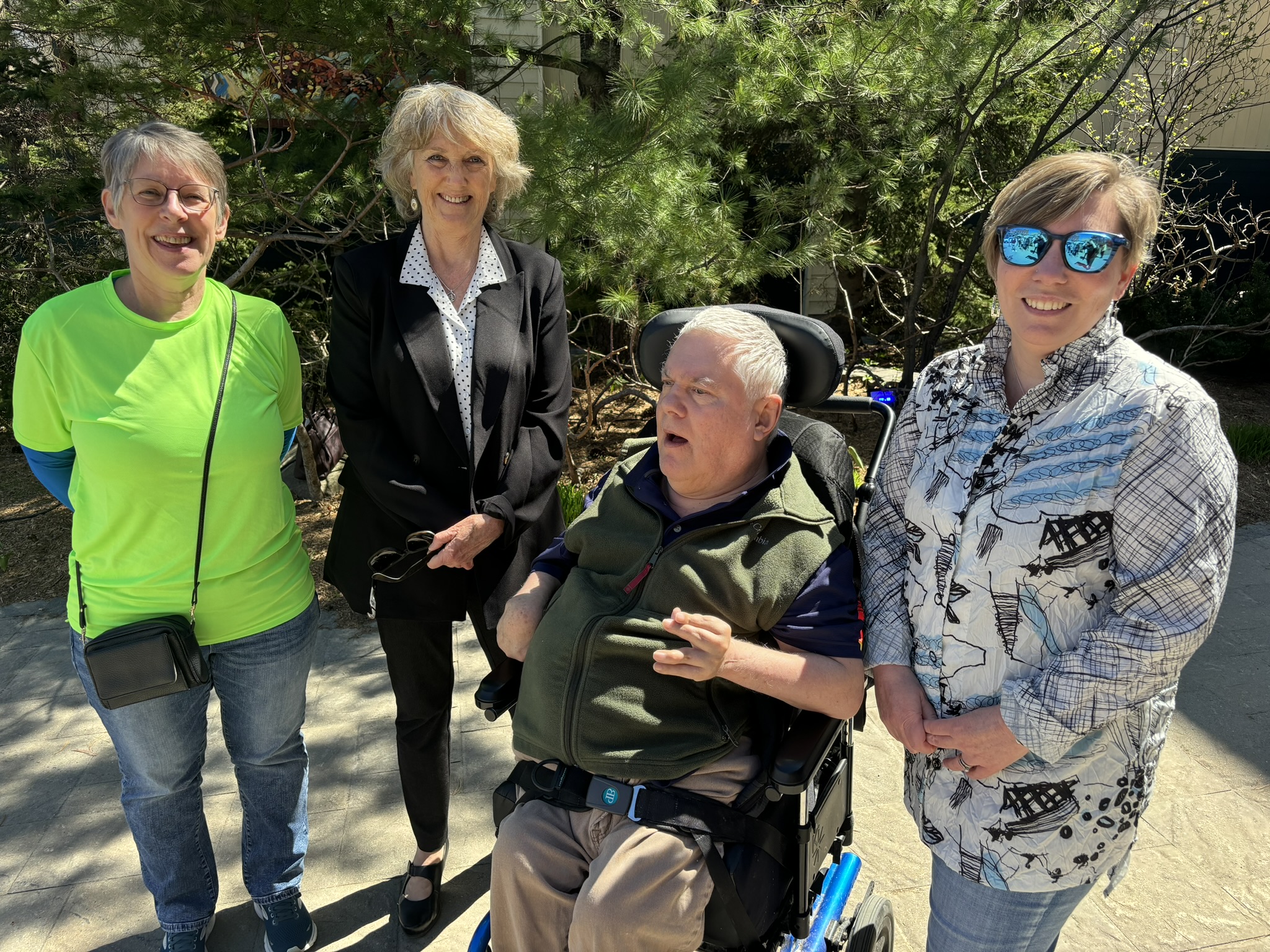Community Living Huntsville board chair Lorraine Morin (left), Huntsville mayor Nancy Alcock, disability advocate Glen Slater, and Community Living Huntsville executive director Suzanne Willett.