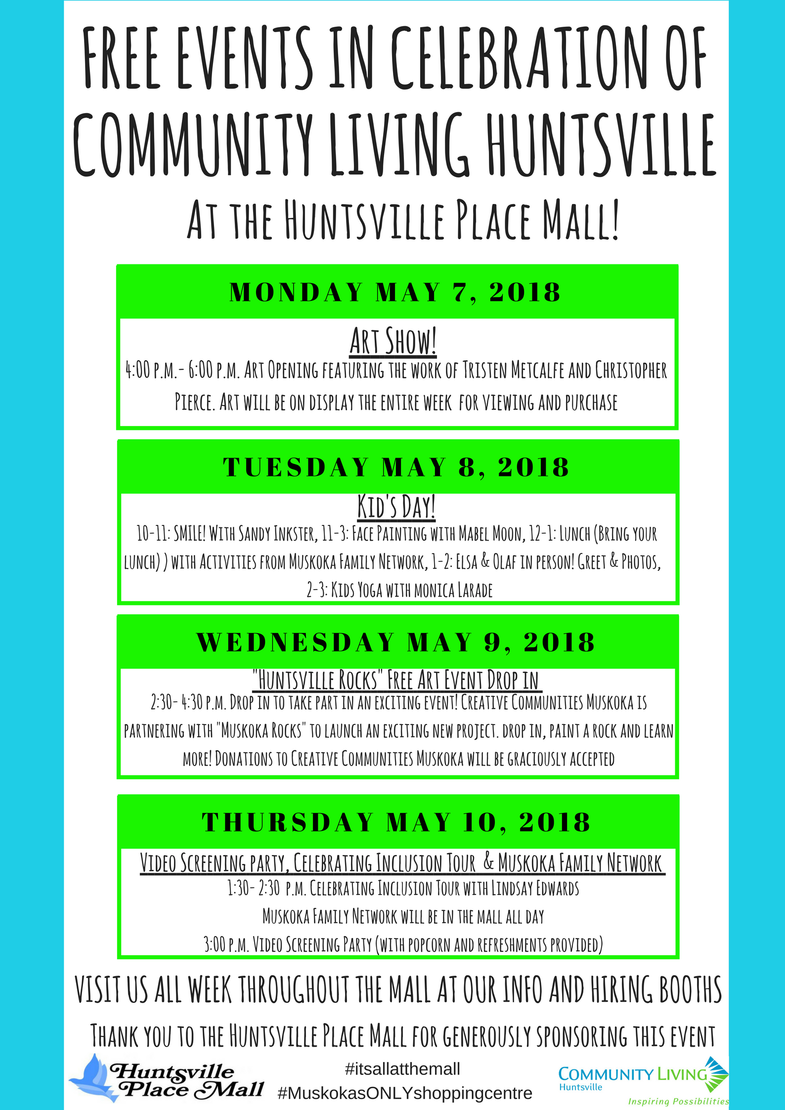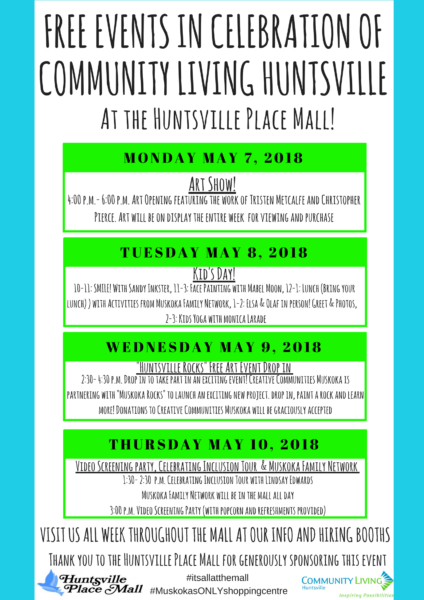 Community Living Huntsville Week at the Huntsville Place Mall! May 7- May 10, 2018