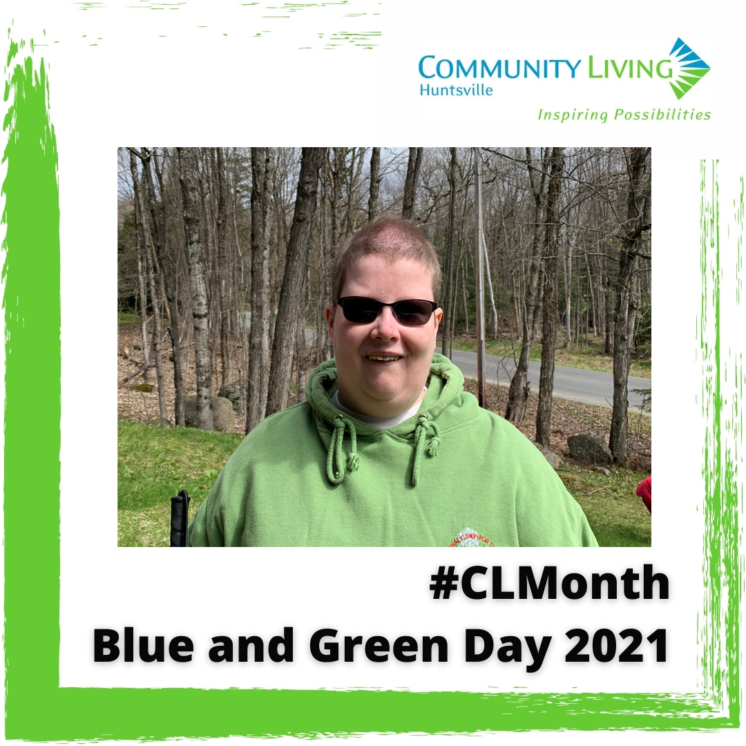 Margo is celebrating Community Living Month’s Blue and Green Day in style!