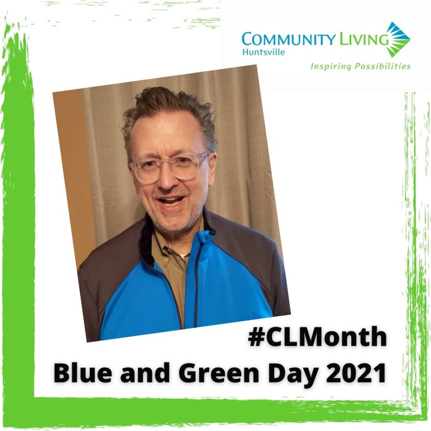 ← → Lake Of Bays mayor Terry Glover gets into the Community Living Month Blue and Green Day spirit in 2021!