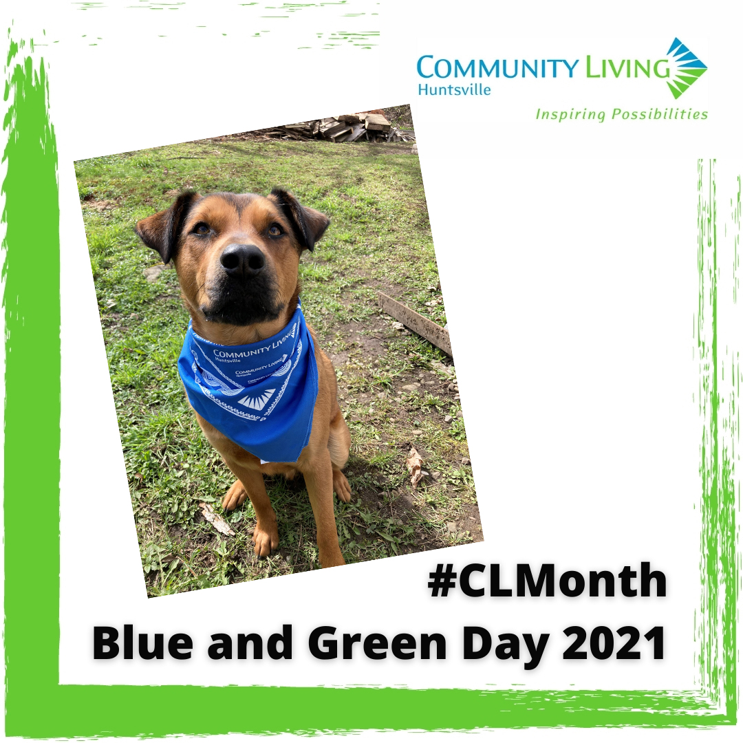 ← → Walt is the goodest boy for his Community Living Month Blue and Green Day photo op to advocate for inclusion in 2021!