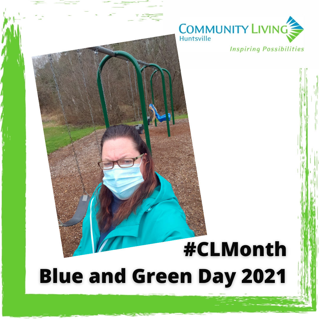 Huntsville coun. Dione Schumacher snaps a selfie to show her support for a diverse and inclusive community for Community Living Month’s Blue and Green Day in 2021!