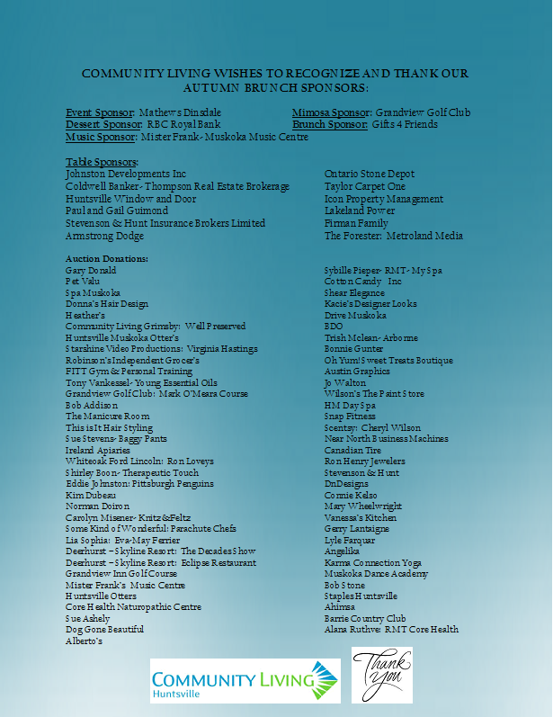 Community Living Huntsville Recognizes and Thanks Brunch Sponsors | Community Living Huntsville Recognizes and Thanks Brunch Sponsors